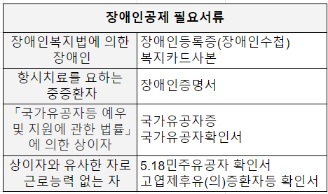 장애인공제를 받고자 하는 경우 아래의 서류를 제출해야 합니다.