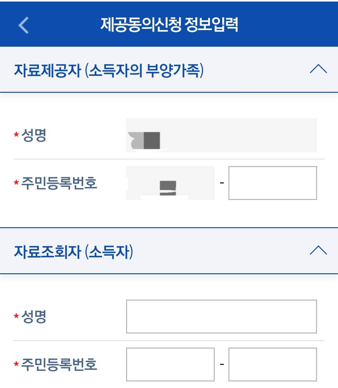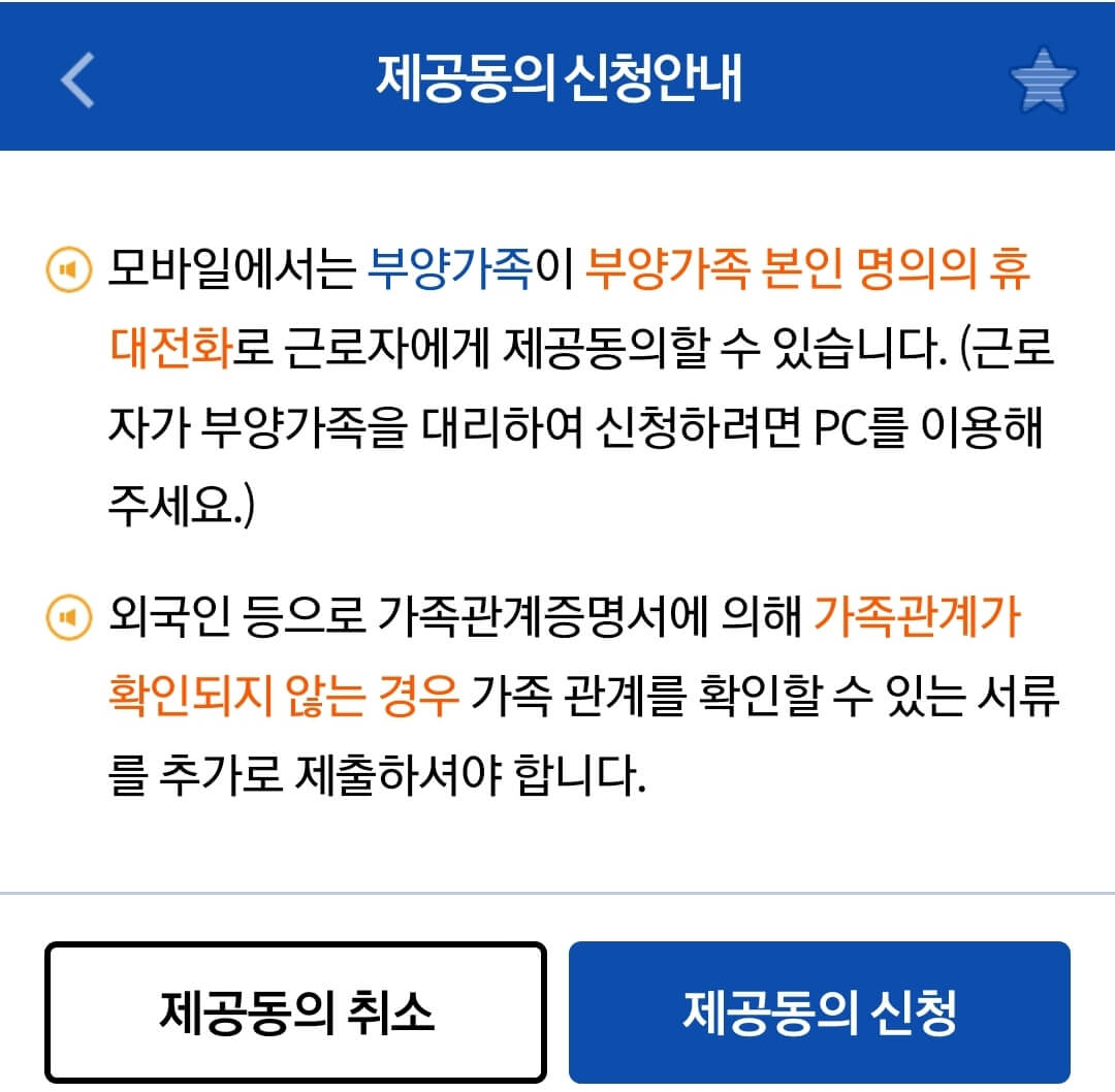 - 부양가족 자료제공동의 방법